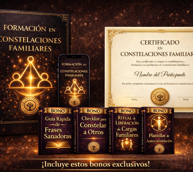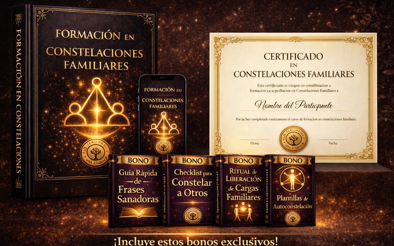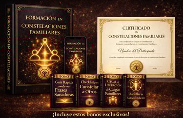 Accede a una formación completa en Constelaciones Familiares, con materiales prácticos, guías aplicables y un certificado de conclusión para acompañarte en tu proceso.