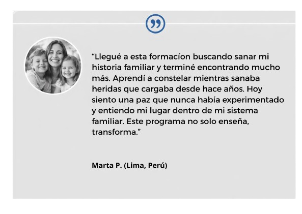 La Formación en Constelaciones Familiares te acompaña para comprender el origen de esos bloqueos y mirar tu historia familiar con mayor claridad.